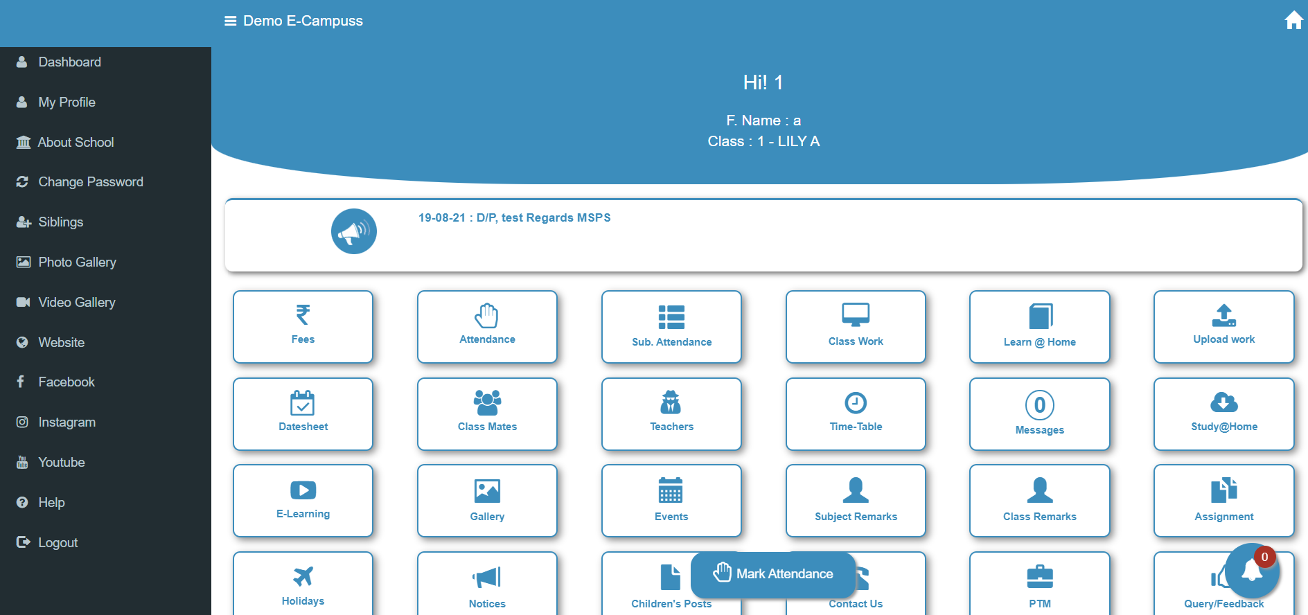 E-Campus is bridges the communication gap between parents and school and builds a direct communication..